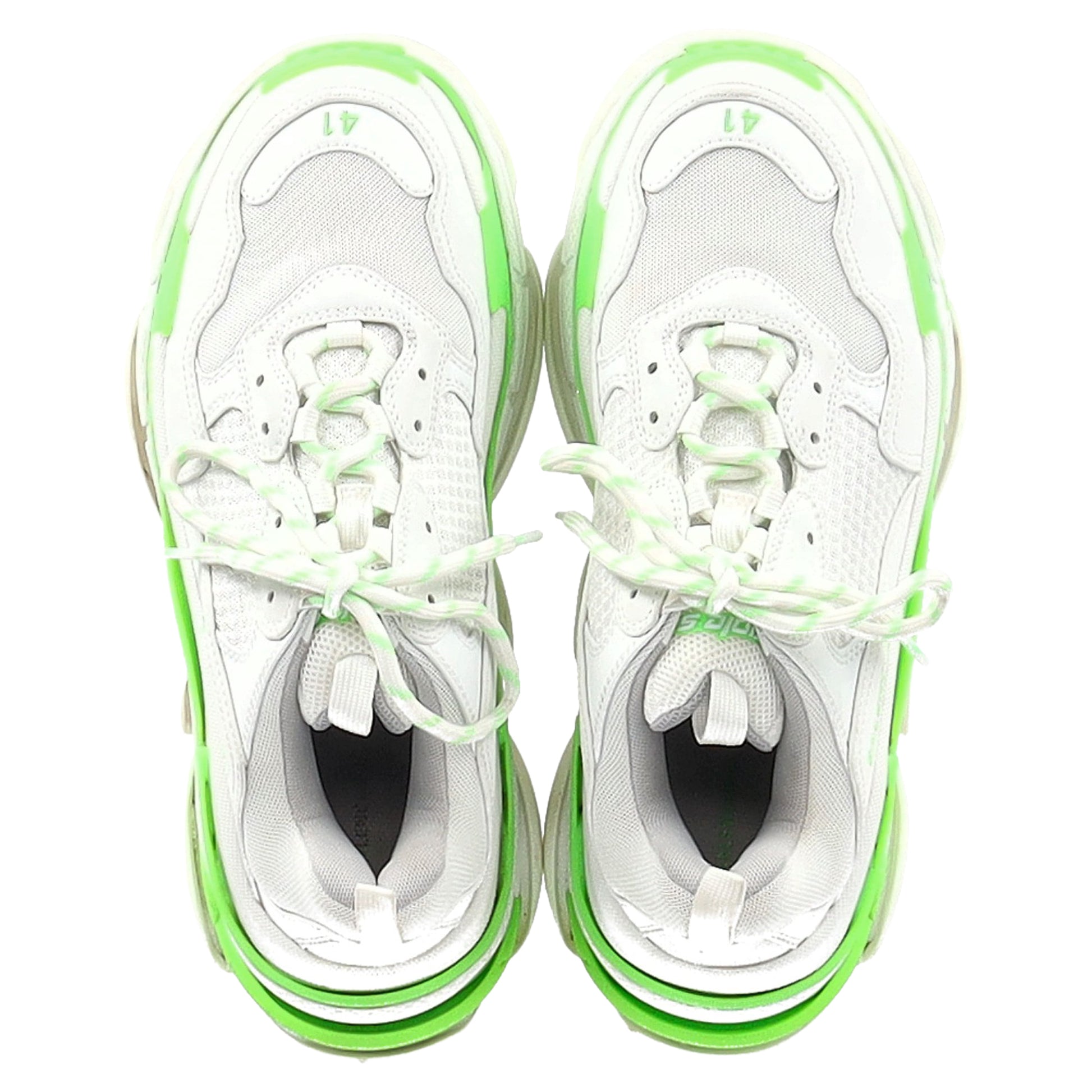 Make a bold impact with the Balenciaga Triple S Sneakers, designed in white and neon green polyester with the brand’s signature oversized silhouette. These fashion-forward sneakers blend athletic edge with high-fashion flair, offering both comfort and unmistakable street style. **Styling tip:** Pair them with neutral-toned joggers and an oversized hoodie or blazer to let the vibrant colors and chunky design stand out. Balenciaga Triple S Sneakers in White and Neon Green Polyester