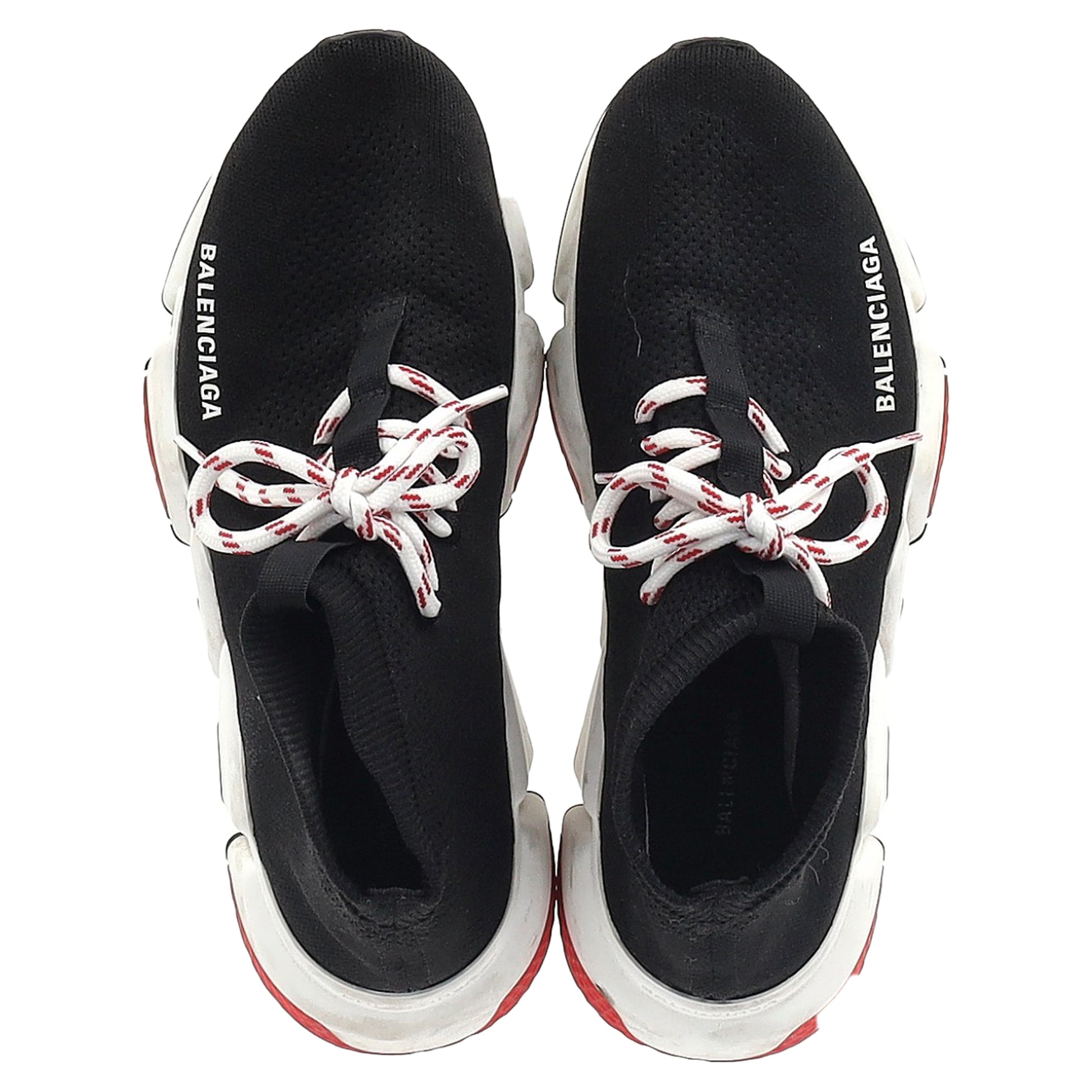 Balenciaga Lace Up Speed Sneakers in Black Polyester – Cutting-Edge Comfort and Style The Balenciaga Lace Up Speed Sneakers in black polyester offer a seamless blend of sporty functionality and high-fashion allure. Featuring a sleek, sock-like construction and modern lace-up design, these sneakers provide both style and all-day comfort. The durable polyester fabric offers flexibility, while the dynamic silhouette adds a touch of urban edge to your wardrobe. Styling Tip: Pair these sneakers with a tailored jumpsuit or a casual midi dress for an effortlessly chic, fashion-forward look. For a sporty vibe, wear them with high-waisted leggings or bike shorts and a cropped sweatshirt. A crossbody bag and minimalist jewelry will complete the look with a touch of understated elegance. Balenciaga Lace Up Speed Sneakers in Black Polyester