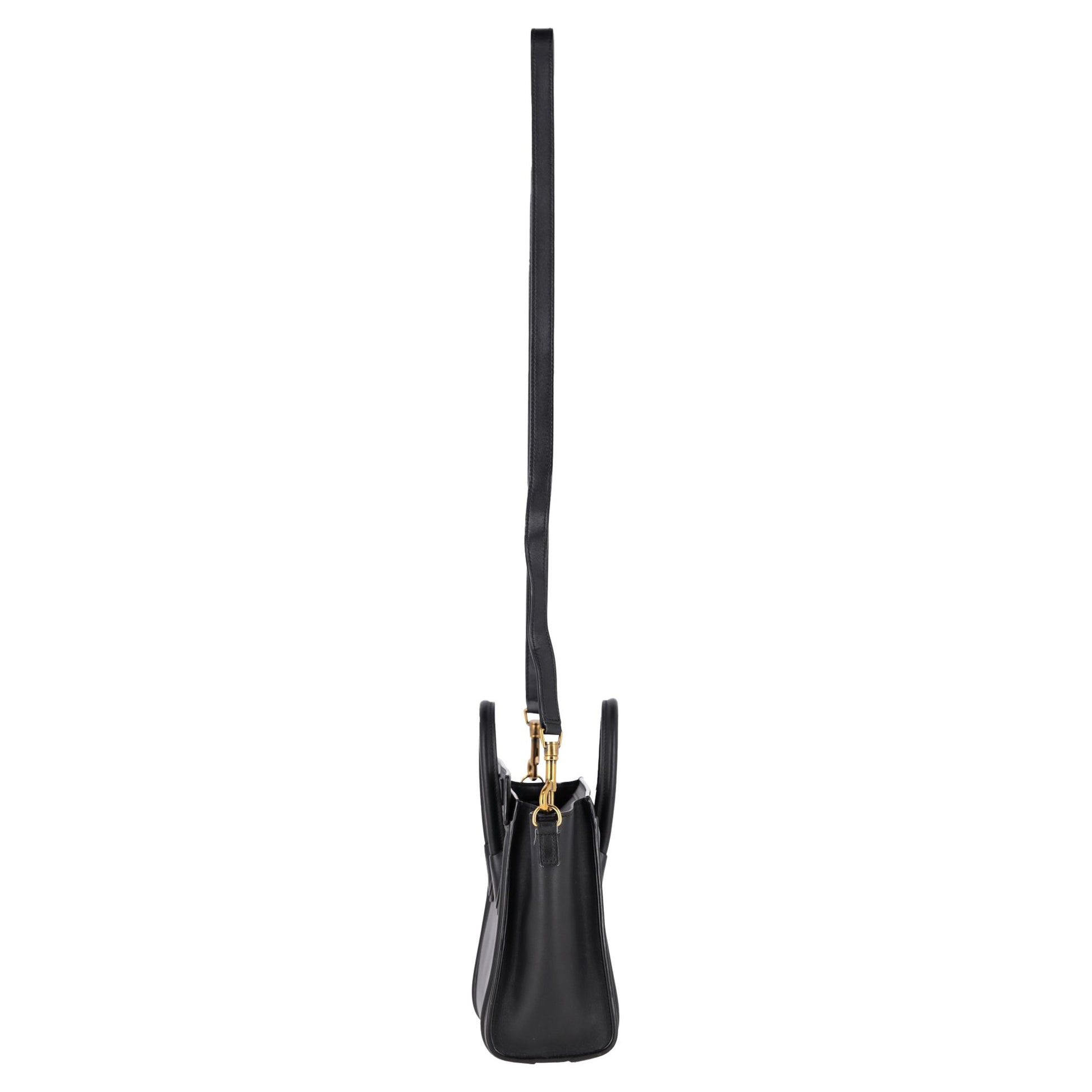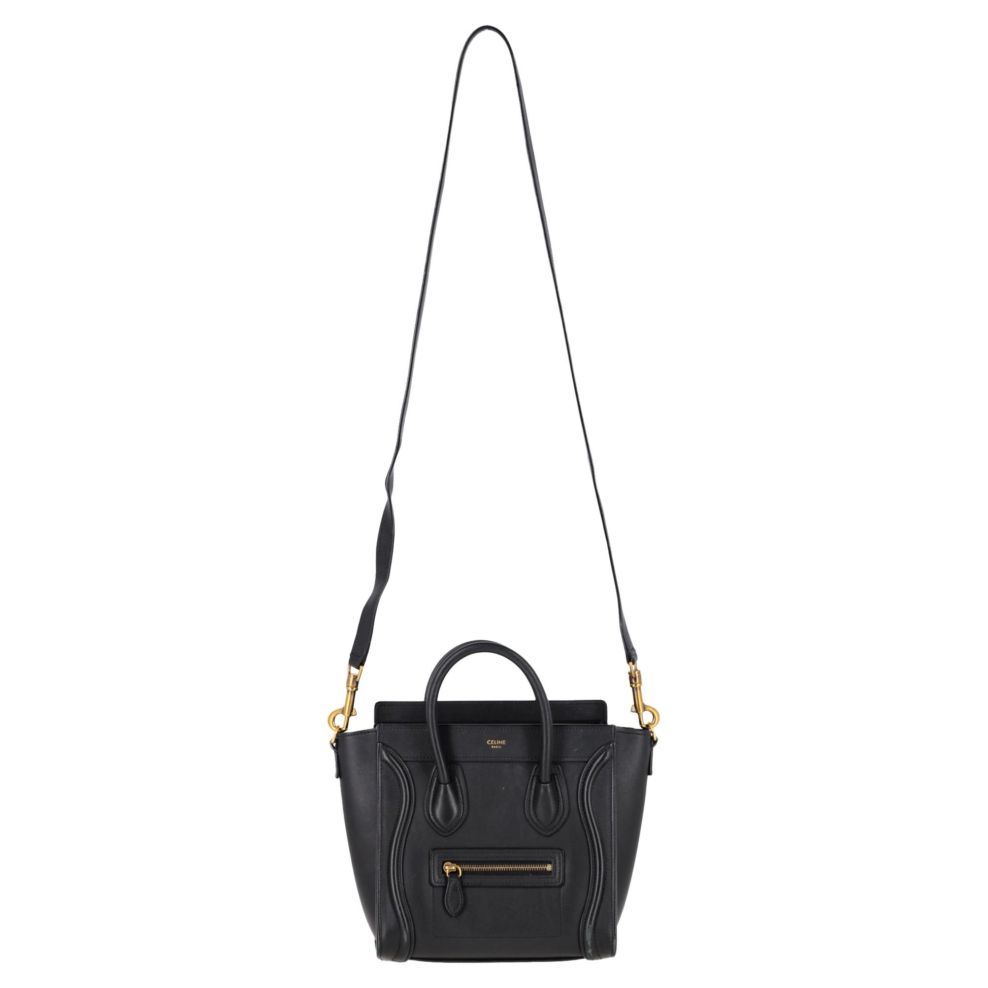 The Celine Nano Luggage Handbag in Black Calf Leather is a modern icon, known for its structured silhouette, winged sides, and clean, architectural lines. Crafted from supple calf leather, it offers compact versatility with a surprisingly spacious interior and crossbody strap for hands-free ease. Style tip: Pair it with a crisp button-down and high-waisted jeans for a polished everyday look, or contrast its sharp edges with a soft, flowy dress for balanced sophistication. Celine Nano Luggage Handbag in Black Calf Leather