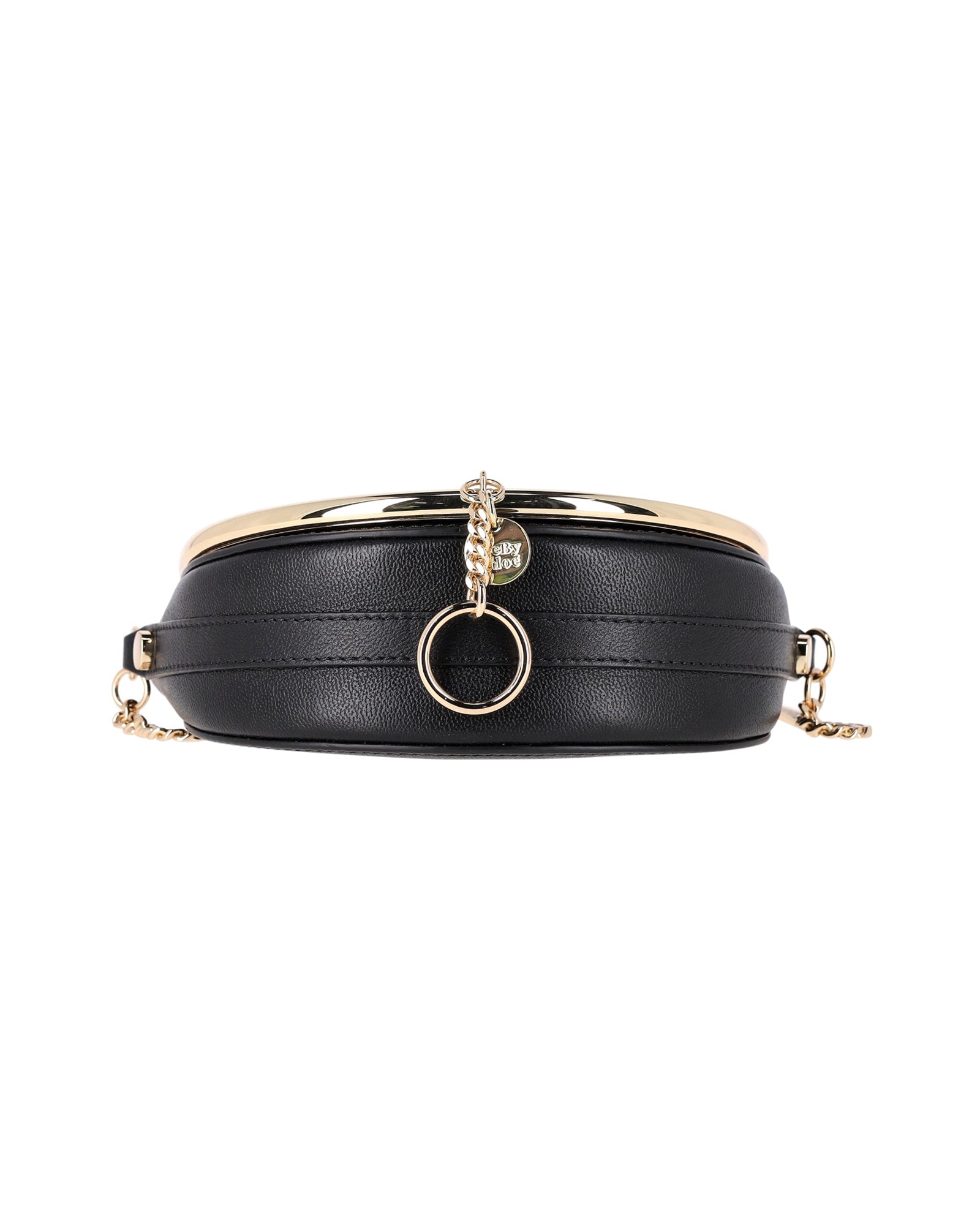 The See by Chloé Mara Evening Bag in Black Leather is a sophisticated and chic accessory that exudes elegance. Crafted from high-quality cowhide leather, this bag is durable and luxurious. It features gold-tone hardware and a logo keychain, adding a touch of glamour to the design. The suede trim adds texture and visual interest to the bag. The fold-over flap is secured with a magnetic snap, keeping your belongings safe and secure. The interior of the bag is designed with convenient card slots and patch pockets, allowing for easy organization of your essentials. The chain link strap adds a stylish touch and can be worn comfortably over the shoulder or across the body. See by Chloé Mara Evening Bag in Black Leather Color: black Material: Leather